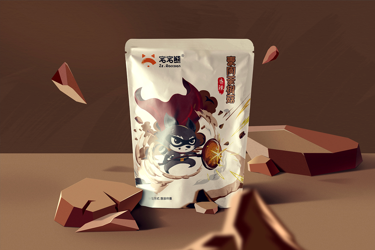 宅宅熊,在于一個(gè)“宅”字。我們通過(guò)精細(xì)化人群定位,以游戲直播、新媒體推廣渠道為主的差異化媒介,塑造了一只玩味、酷帥、俠義的浣熊IP,結(jié)合動(dòng)漫游戲相關(guān)的IP角色植入到系列包裝視覺(jué)中,與目標(biāo)消費(fèi)群形成情感共鳴,成為互聯(lián)網(wǎng)休閑食品市場(chǎng)的新興寵兒。。