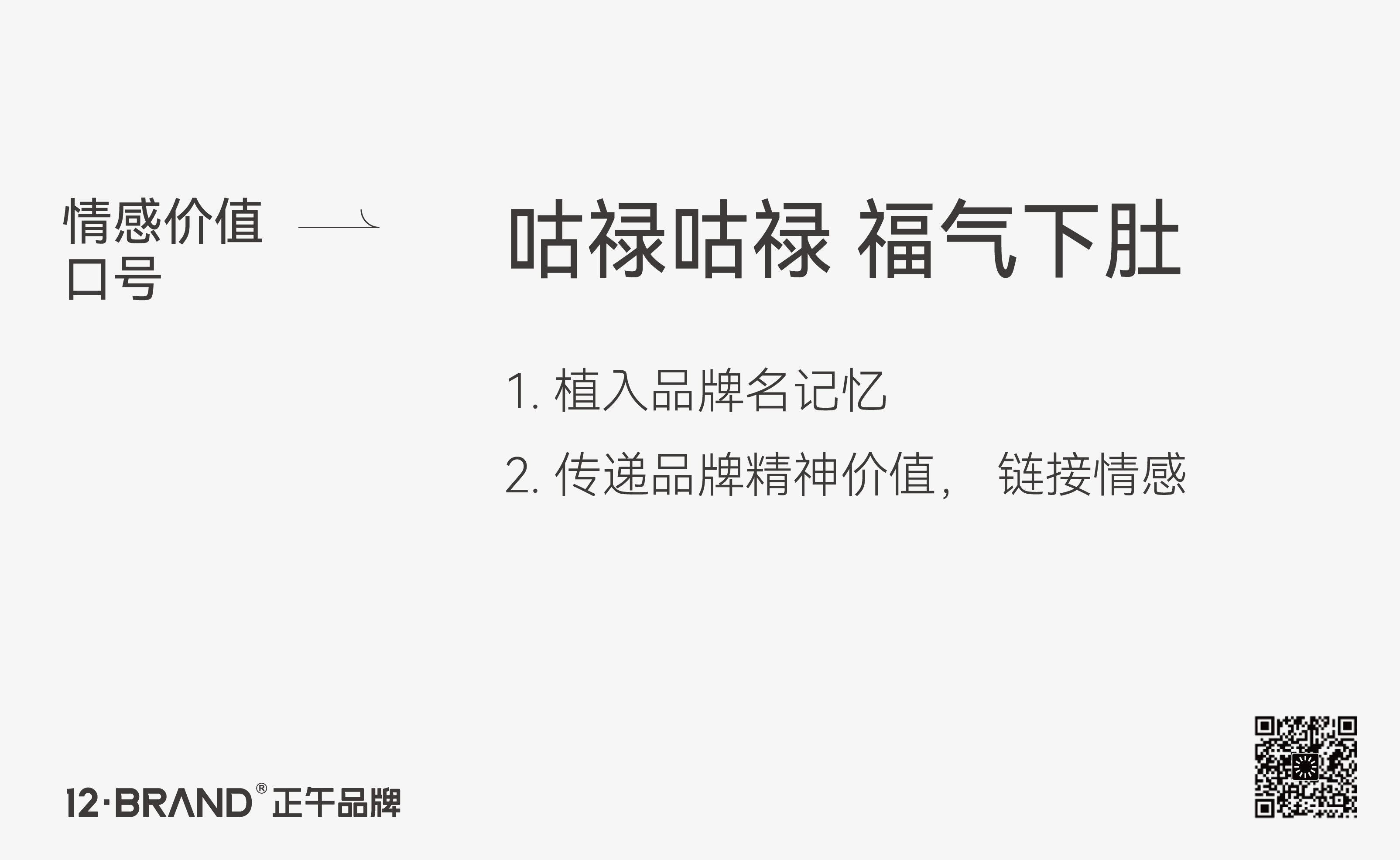 從情感鏈接與品牌記憶角度,我們提煉出品牌口號(hào)——“咕祿咕祿,福氣下肚”,用好寓意鏈接情感記憶,讓品牌名不脛而走。