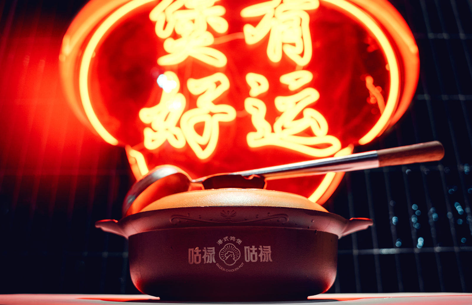 正午圍繞港式雞煲打邊爐的品類(lèi)屬性與價(jià)值屬性,將二者相結(jié)合,將品牌命名為“咕祿咕祿”。