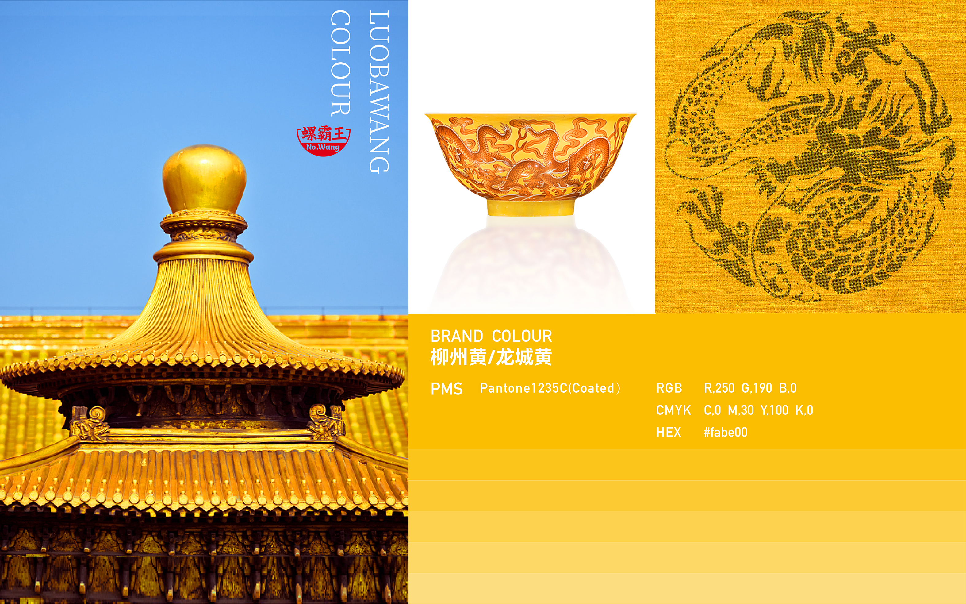 從“柳州地域”與“中國第一”的角度審視,我們認為,紅黃色之于螺霸王是非常有價值的,它不止于傳承品牌識別功能,更多的是柳州龍城“黃”與中國霸王“紅”的霸氣印象加持。