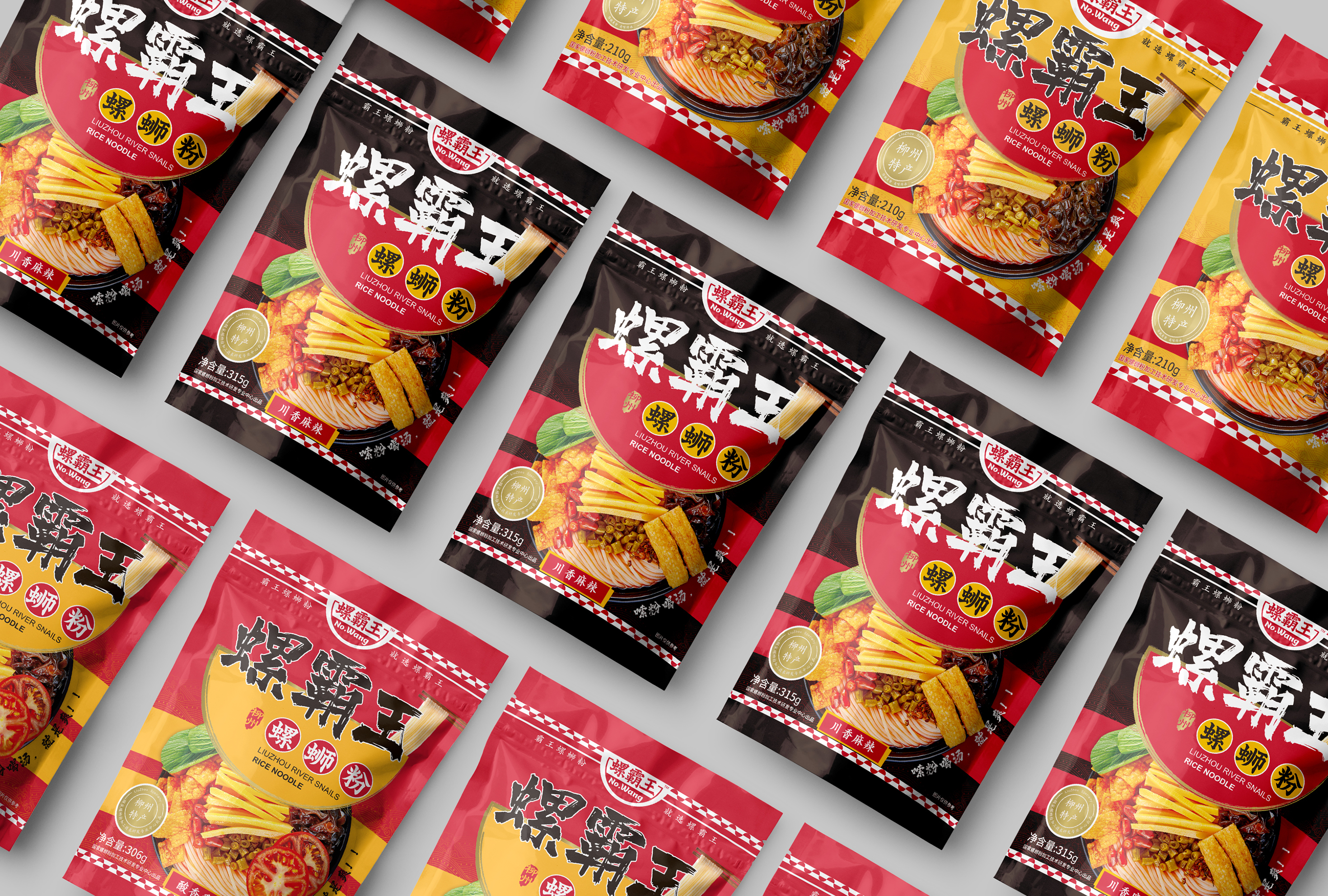 以清晰化、系統(tǒng)化、年輕化的產(chǎn)品形象價值搶占消費者心智。通過產(chǎn)品系列化升級,助力螺霸王建立屬于霸王螺螄粉獨有的利益認知+視覺資產(chǎn)。